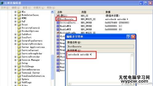 依次展開(kāi)“HKEY_LOCAL_macHINE ”→“SYSTEM ”→“CurrentControlSet ”→“Control ”→“SessionManager ”,在右側(cè)找到BootExecute項(xiàng),雙擊將其值設(shè)置為“ autocheck autochk *”。 經(jīng)過(guò)這樣設(shè)置以后,如果電腦出現(xiàn)藍(lán)屏,將會(huì)在電腦重啟后自動(dòng)運(yùn)行自檢程序,試圖對(duì)系統(tǒng)中存在的錯(cuò)誤進(jìn)行修復(fù)。