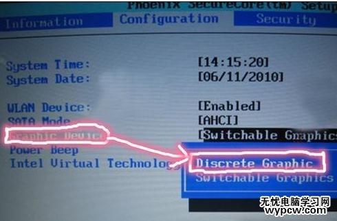 現(xiàn)在用上下鍵切換到“Graphic Device”,回車選擇“Discrete Graphic”。