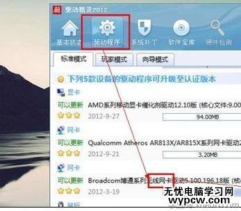 如果您的無線網絡還是有問題,執行以下操作。若您沒有安裝或長時間未更新無線網絡設備驅動,請打開驅動精靈等軟件,安裝或更新自己的無線網絡驅動程序。如圖所示,找到“無線網卡”驅動,然后安裝或更新。
