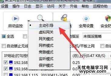 在程序主界面中,點擊“啟用監控”下拉列表,從中選擇“主動引導”或者根據實際網絡情況進行選擇一種模式。