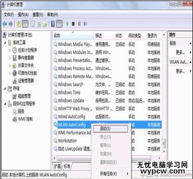 2、然后在同樣的計算機管理界面,找到服務和應用程序-服務,win7系統www.xitongcheng.com/win7/下開啟WLAN AutoConfig服務