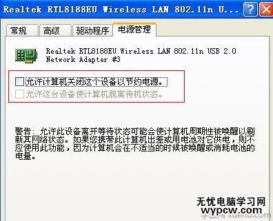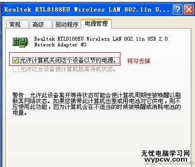 將“允許計算機關閉這個設備以節約電源”選項前面的勾給去掉,然后確定——》關閉