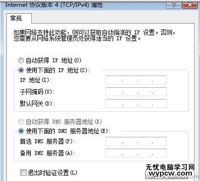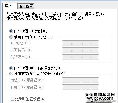 這里是關鍵的一步,如果您是使用路由器上網,選擇"自動獲得IP地址"和“自動獲得DNS服務器地址”,如果您所在網絡是使用靜態IP上網,詢問下網絡管理員,給你分配一個可使用的地址,選擇“使用下面的IP地址”和“使用下面的DNS服務器地址”。