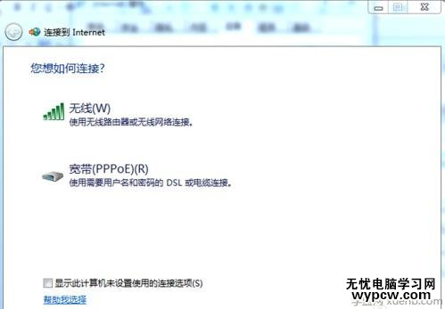 選擇其中的寬帶鏈接(筆記本用戶可根據(jù)具體情況選擇寬帶或無線兩種方式)