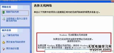 打開(kāi)無(wú)線網(wǎng)絡(luò)連接,提示windows無(wú)法配置此無(wú)線網(wǎng)絡(luò),未開(kāi)啟WZC服務(wù)。