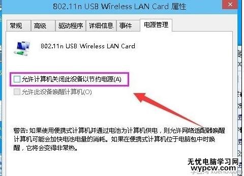 點(diǎn)擊【電源管理】然后把【允許計(jì)算機(jī)關(guān)閉設(shè)備節(jié)約電源】取消勾選 ,再點(diǎn)擊確定看看它待機(jī)了還會(huì)不會(huì)有用。