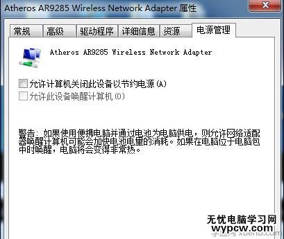 再點擊電源管理,默認情況下,允許計算機關閉此設備以節約電源這個選項是勾選的,我們需要把勾給取消掉,這樣電腦休眠的時候,就不會斷網了