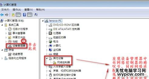 6、接著打開計算機管理界面,點擊系統工具下的“設備管理器”項,具體操作如下圖;