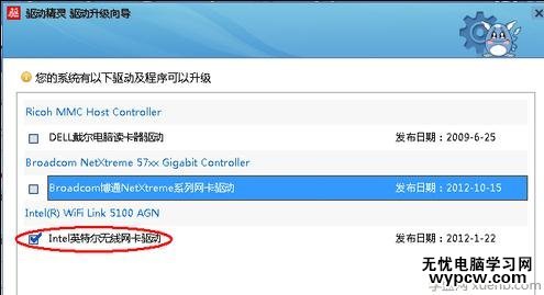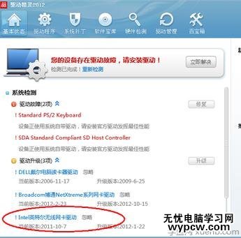 然后,我們在驅動檢測更新列表中的升級一欄中,找到無線網卡。可以看到當前所使用的驅動程序發布日期和最新驅動的發布日期,如圖所示