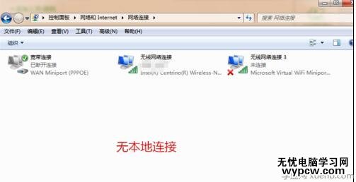 點擊開始——控制面板——網絡和Inte.net——網絡和共享中心——更改適配器設置,我們會發現這里沒有本地連接,