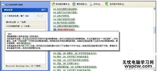 在搜索框鍵入錯誤代碼,如“651”,然后按回車鍵搜索