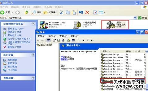 5、WZC服務沒開,需要點擊開始菜單,依次選擇“控制面板”-“管理工具”-“服務”,找到“windows Zero Configuration”這項服務,雙擊進入,啟動服務并將啟動方式改為自動。