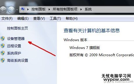 在屬性頁(yè)中,點(diǎn)擊左邊的設(shè)備管理器選項(xiàng)。如圖所示。