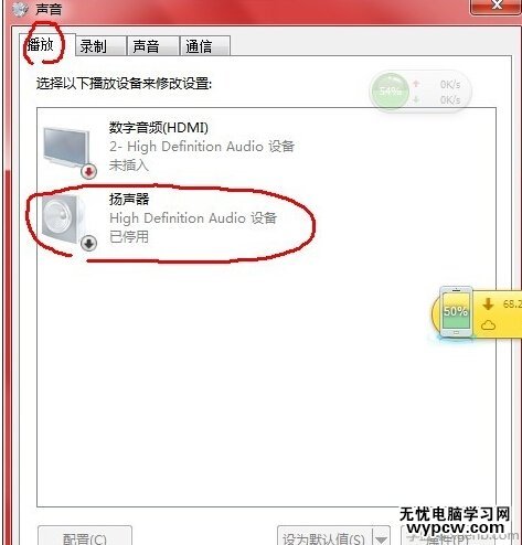 需要 右擊有效較音頻圖標---->點擊聲音---->播放---->揚聲器---->右擊啟用。如圖: