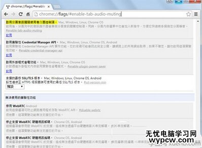 開啟Google chrome瀏覽器,在上方網(wǎng)址列輸入「chrome://flags/#enable-tab-audio-muting」,按下〔enter〕鍵后會(huì)跳至設(shè)定頁面,找到其中的「啟用分頁音頻開關(guān)用戶接口控件」。