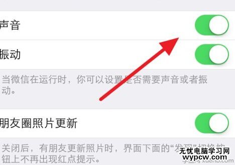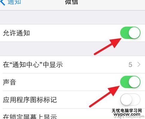6、將微信的【允許通知】打開,如果希望有聲音提醒,需要在這里將【聲音】打開,否則只將微信設置里的聲音打開,微信還是沒有聲音的