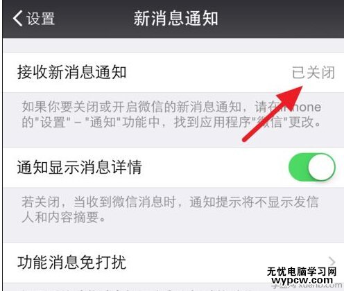 3、看到第一個【接收新消息通知】,如果后面是【已關閉】需要到【設置】-【通知】下開啟消息提醒,如果是【已開啟】,也需要到【設置】-【通知】下查看聲音提醒是否打開