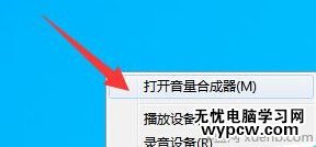 9、此外,點擊任務欄“小喇叭”圖標,從其右擊中選擇“音量合成器”項進入詳細設置界面;