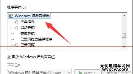 5、在程序事件下方找到【資源管理器】選項(xiàng),鼠標(biāo)點(diǎn)擊選中