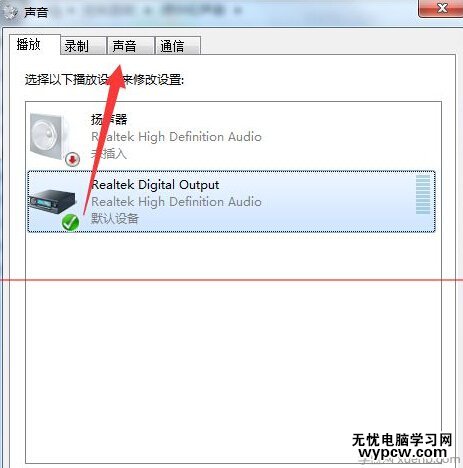 4、進(jìn)入聲音屬性對(duì)話框,點(diǎn)擊上方菜單欄處的【聲音】