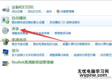 3、在硬件和聲音列表中,點(diǎn)擊【聲音】選項(xiàng)