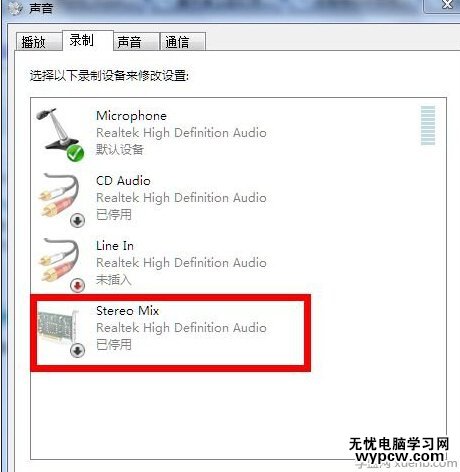 4、然后就會出現(xiàn)下面標注的“stereo Mix”設(shè)備。