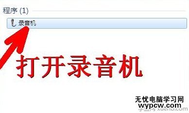 8、然后你打開開始菜單,在最下方的搜索框中輸入錄音機三個字,這時上面會出現(xiàn)這個錄音機程序,打開它。