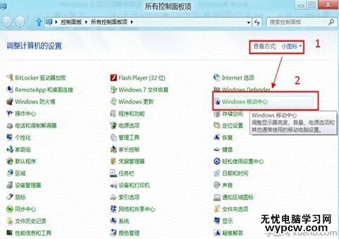 2、在“控制面板”里面點擊右上角的“查看方式”,選擇為“小圖標”,在“調整計算機的設置”下選擇“聲音”。參見下圖