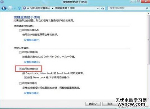 首先進入控制面板,更改鍵盤的工作方式,取消勾選啟動切換鍵即可