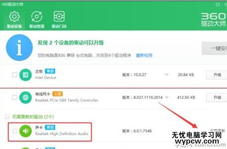 2、檢查看一下聲卡的驅動是否需要更新 如果需要更新 點擊立即安裝等