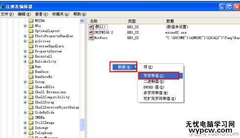 6、依次進入“HKEY_LOCAL_macHINE”→“SOFTWARE”→“Microsoft”→“Windows”→“CurrentVersion”→“Run”,然后右擊,選擇“新建”→“字符串值”。