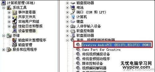 然后我們找到“聲音、視頻和游戲控制器”點開它,找到和聲音有關的選項(一般含有audio的選項就是有聲卡相關的設備),首先看看它是否有問號,如果有問號的話,證明沒有安裝聲卡驅動,安裝即可。