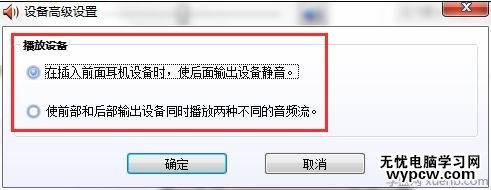 選擇“設(shè)置高級(jí)設(shè)置”,選擇第一項(xiàng),即“在插入前面耳機(jī)設(shè)備時(shí),使后面輸出設(shè)備靜音”。
