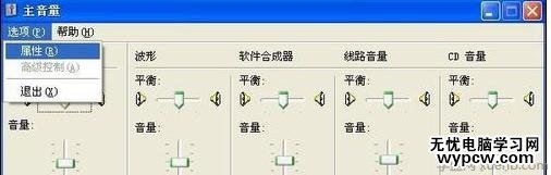 如果沒有被禁音,那么會不會是被禁用了呢,于是最終問題終于找到了,我的電腦麥克風沒有設置啟用。啟用方法如第三步,先打開主音量控制窗口,選擇菜單下的屬性查看功能。