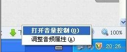第四步我才想到是不是電腦音量控制里的麥克風是不是被禁音了,檢查方法如圖右鍵點擊桌面右下角的音量小喇叭圖標,選擇打開音量控制。