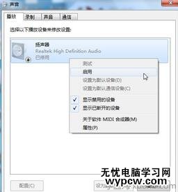 1:檢查聲音設備是不是正確。很多朋友早操作系統不當的情況下,誤把揚聲器給停用了,那么這個時候只要點擊開始按鈕