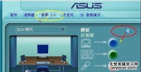 進入"Realtek高清晰音頻配置"界面,選擇切換到頂部的"音頻I/O"選項卡,并點擊"模擬面板"的設置圖標,如下圖: