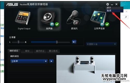 打開控制面板—硬件和聲音—Realtek高清晰音頻管理器—揚聲器。