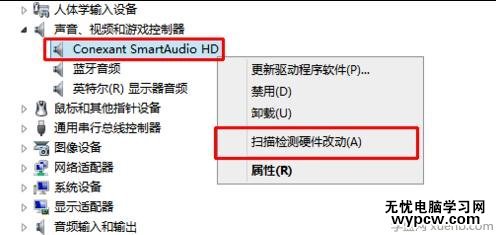第五步:找到“Conexant SmartAudio HD”右擊,點擊“掃描檢測硬件改動”