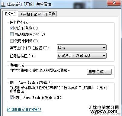 在跳出的“任務欄和開始菜單屬性”中點擊“自定義”按鈕,如圖4所示: