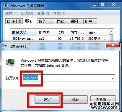 在運行窗口輸入explorer。點擊確定按鈕,好了,桌面恢復正常,然后右下角的小喇叭回來了!