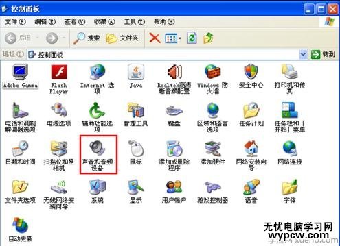 點(diǎn)擊“控制面板”后,打開(kāi)控制面板程序,找到“聲音和音頻設(shè)備”,并雙擊打開(kāi)