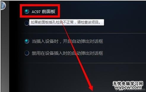 在彈出的面板里我們點擊“AC97前面板”,重新裝載音頻裝置,