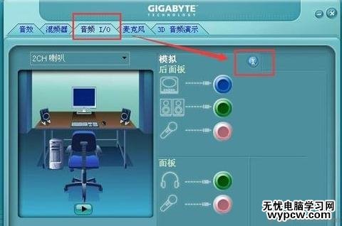 此時你會看到【模擬】右邊有個扳手小圖標,點它會出現接頭設置,把禁用前面板插孔和當插入正面耳機時關閉后面板輸出。