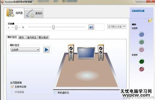 在Realtek高清晰音頻管理器設置面板中可以看到右上角有一個文件夾樣的按鈕,點擊進入。