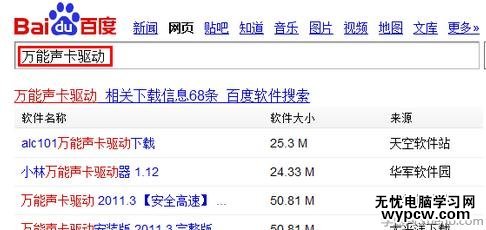 在百度搜索萬能聲卡驅動,找到一個鏈接,進入下載,下載之后安裝,安裝之后重啟就可以恢復正常的聲音了。