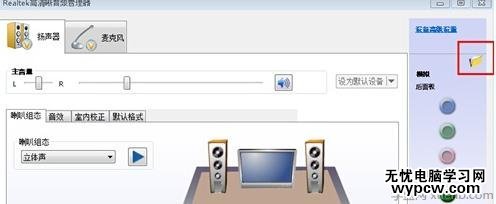 進(jìn)入電腦桌面,左下角的開(kāi)始--控制面板-選擇"聲音、語(yǔ)音和音頻設(shè)備"--“Realtek高清晰音頻配置”如下圖: