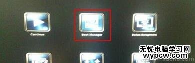 2、在開機(jī)畫面出現(xiàn)時(shí)迅速按下“ESC”,并選擇進(jìn)入“boos manger”引導(dǎo)選項(xiàng)管理窗口。