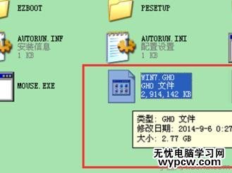 在這些文件夾中,你會發現其他的文件都很小,只有一個特別大的文件,他就是系統的核心WIN7.GHO。