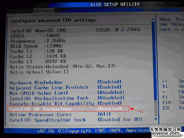 找到Intel(R) HT Technology 改為Enablue即可(如下圖所示)。
